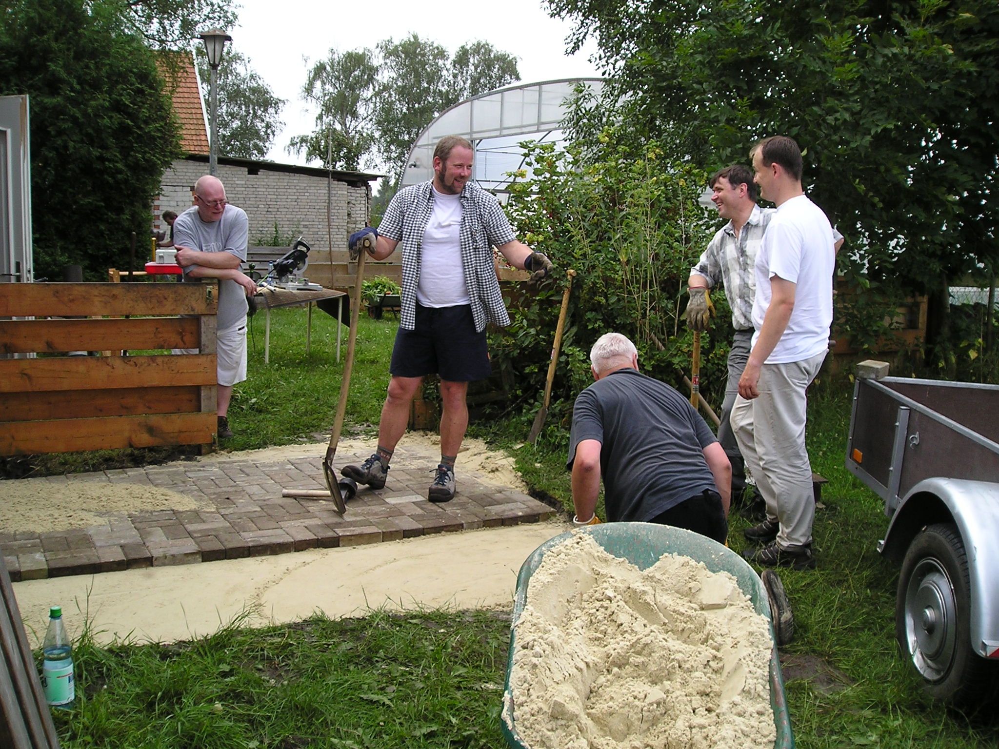 Den Eingangsbereich zum Platz haben wir gepflastert, damit die Hunde in der Kaffeepause dort nicht immer buddeln können.